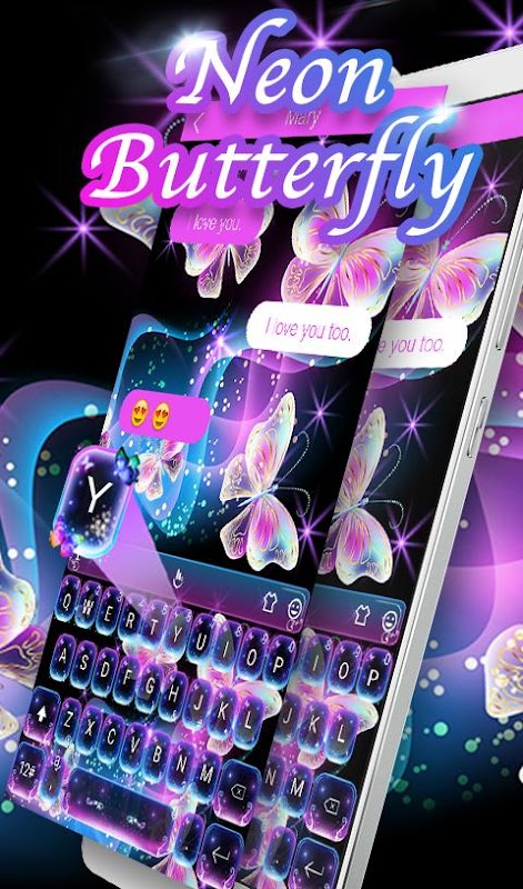 Smart& Fast Glitter Neon Purple Butterfly Theme. Emoji, Stickers for free!