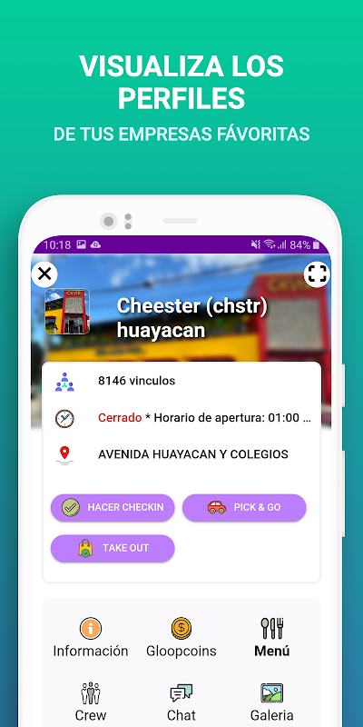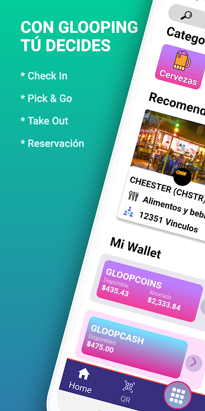گلوپنگ ایک ایسی ایپ ہے جس کو پروڈکٹیو سوشل نیٹ ورک کہا جاتا ہے ، جس کا مقصد یہ ہے کہ ہم اپنی روزمرہ کی زندگیوں میں ان کمپنیوں ، ریستورانوں یا آپ کی پسند کی دکانوں کے ساتھ بہتر مواصلت کرتے ہوئے ، ہر ایک کے لئے GLOOPCOINS نامی وفاداری بونس تیار کرتے ہوئے ایک ٹول تیار کریں۔ جب آپ اپنی پسندیدہ جگہ دیکھیں