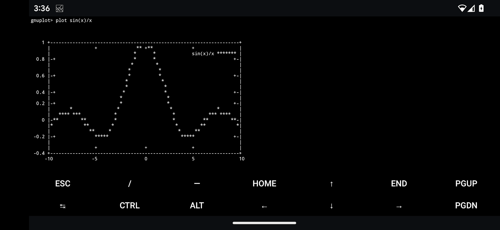 یہ واقعی آپ کے آلے پر چل رہا ہے gnuplot ہے۔ یہ مکمل خصوصیات والا اور پیشہ ورانہ طور پر تعاون یافتہ ہے۔ یہ gnuplot کے لینکس ڈیسک ٹاپ ایڈیشن کو چلاتا ہے۔