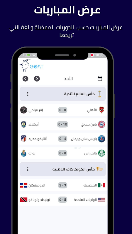 GOAT - فٹ بال میچوں کے بارے میں مکمل تفصیلات فراہم کرنے میں مہارت حاصل کرنے والی ایک درخواست