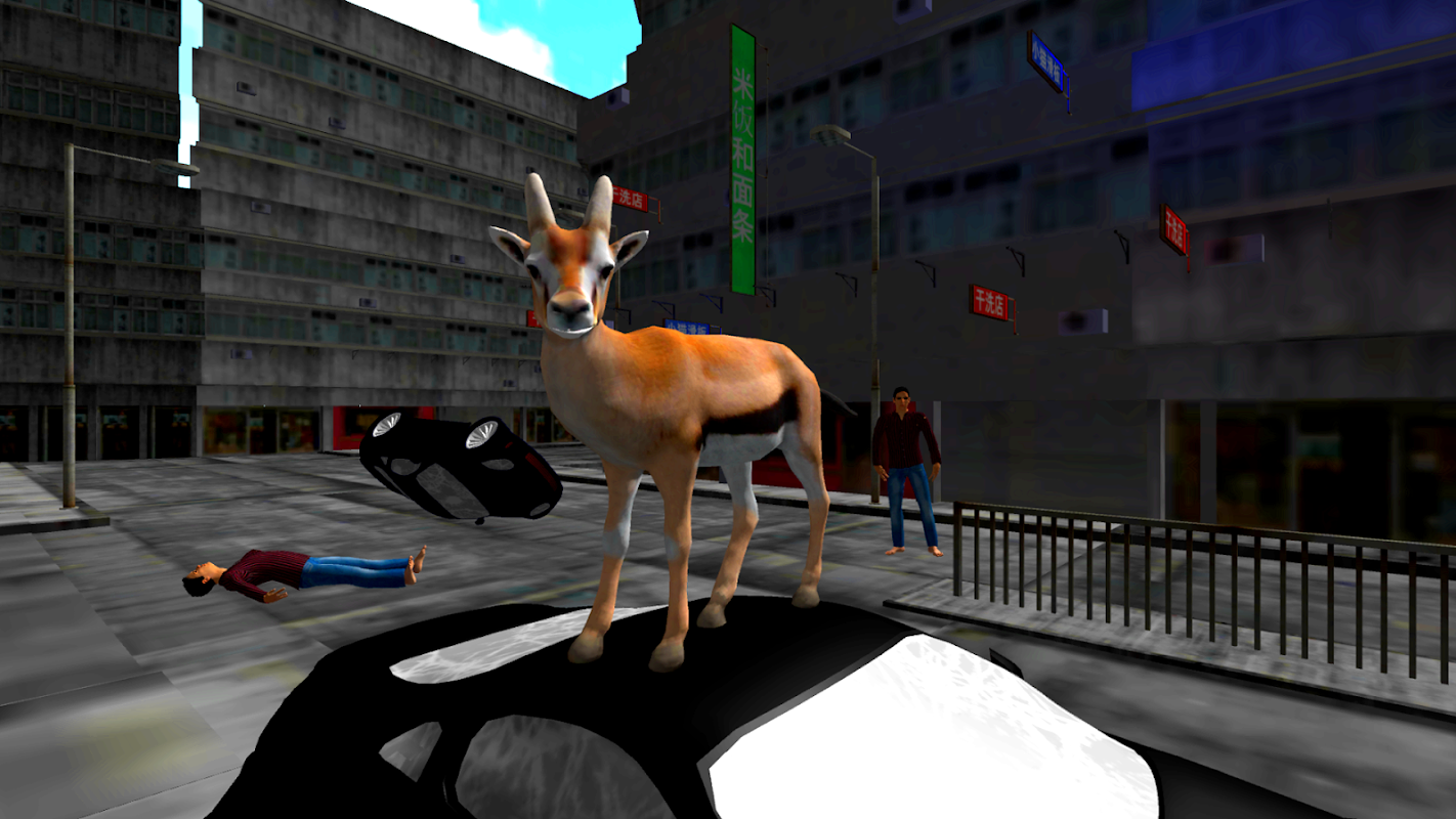 A super fun goat simulator for play store. An angry goat has gone loose on the city streets. Controls this 3D simulator goat in this fun and nonsensical game. You are in control of this super powerful goat. Use his super strength to throw cars, helicopters, tanks, and other large objects. Hours of fun to be had searching around for fun objects to toss around. The object of the game is to score as many points as possible before the time runs out. Keep searching, you never know what you may find.