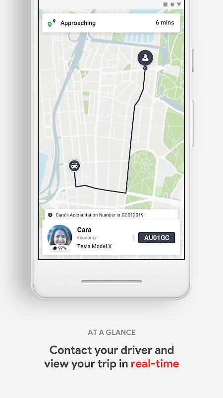 - Confirm and you’ll see your driver’s arrival in real-time on the map, along with their picture, vehicle and contact details.