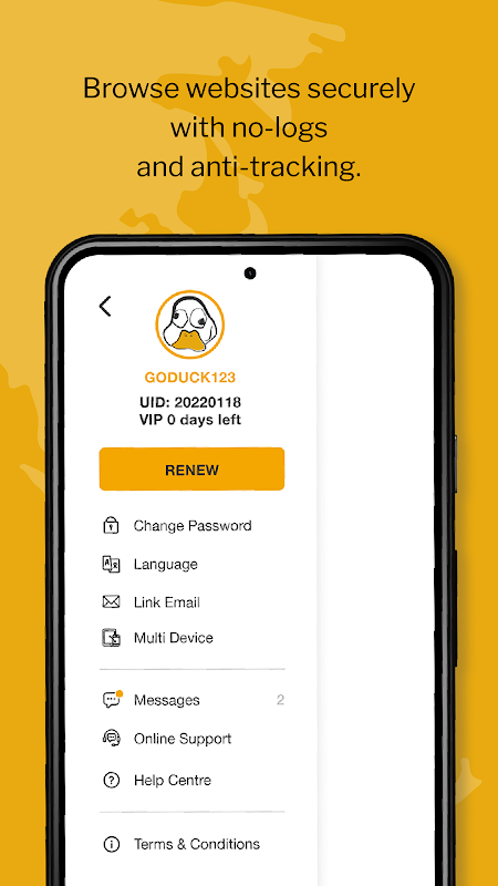 GoDuck VPN آپ کو کسی بھی وقت، کہیں بھی عالمی ویب کو محفوظ طریقے سے براؤز کرنے دیتا ہے۔