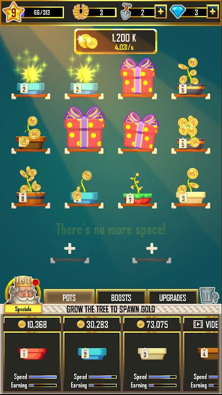 Gold Tree can go Idle! Every once in a while every pot will generate some gold. The better pots, the better tree you get. The better tree, the higher gold income!