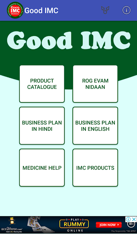 This Application will Help to all IMC Associates they can find Products Catalogue, Rog evam Nidaan, Business Plan in Hindi and English, Medicine Help and also they can Visit to company portal for finding more knowledge about the business and they can login to their Associate Account.