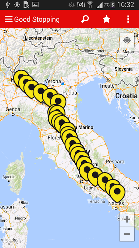 All data about stopping stations (names, reviews, positions) included in the app are provided by Market Road: a guide for all stopping areas along the Italian highways.