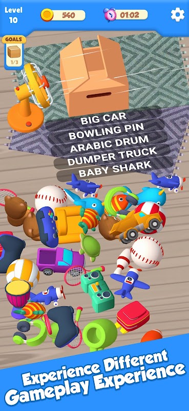 ⚠️براہ کرم توجہ فرمائیں: صرف محدود وقت میں گیم مکمل کرنے اور تمام اشیاء کو باکس میں چھانٹ کر ہی آپ گڈز پیکجنگ گیم جیت سکتے ہیں۔