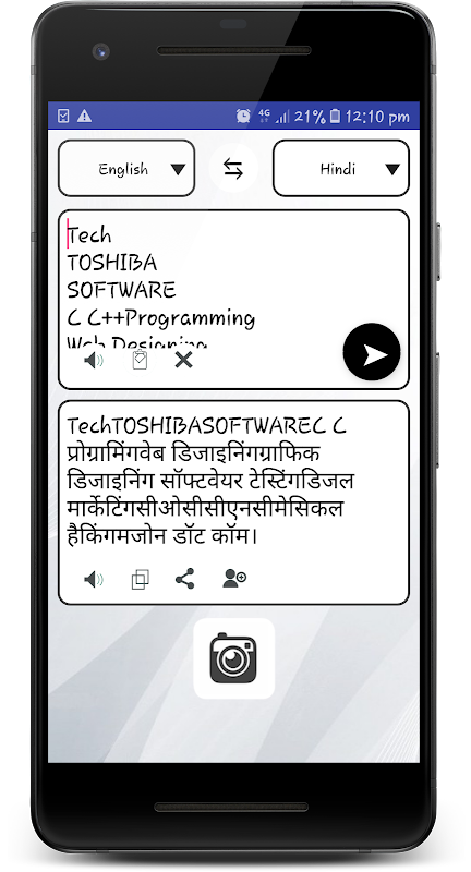 Fastest All Translator is very easy to use, Camera translator open enter data in box click translate button You will see answer. You will see translate sentences. same as camera translator in photo scan via camera or gallery then crop translate click result display.