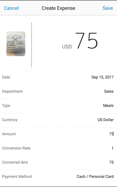- آلے کے کیمرا کا استعمال کرتے ہوئے رسید کی تصاویر لیں اور اخراجات سے منسلک ہوں