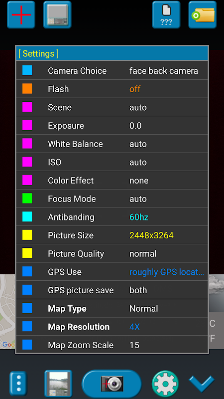 جب آپ تصویر کھینچتے ہیں تو ، اس ایپلیکیشن سے نقشہ ، پتہ ، موسم اور تاریخ تصویر پر چسپاں ہوجائے گی۔ (GPS عرض البلد / طول البلد معلومات کو بھی شامل کیا جاسکتا ہے)