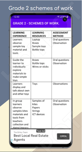گریڈ 2 کام کی تمام اسکیمیں گریڈ 2 کے تمام مضامین کی کام کی CBC اسکیموں کو جمع کرتی ہیں۔ یہ موبائل سافٹ ویئر وقت کے حوالے سے اساتذہ کی منصوبہ بندی اور اسباق کی منصوبہ بندی میں مدد کے لیے ڈیزائن کیا گیا ہے۔ کام کی اسکیموں کو صاف ستھرا قطاروں اور کالموں میں ترتیب دیا گیا ہے جو استاد کو اس بات میں مدد کرے گا کہ وہ کس طرح ضروری مواد کو پڑھانے جا رہا ہے۔