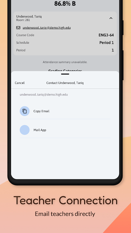 - اساتذہ کو آسانی سے ایپ سے براہ راست ای میل کریں۔