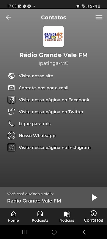 + Tenha acesso aos contatos e redes sociais da rádio