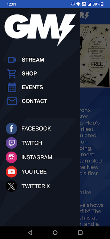 یہ لیجنڈری گرینڈ ماسٹر فلیش کی آفیشل اینڈرائیڈ ایپ ہے۔ اس ایپ میں، آپ براہ راست گرینڈ ماسٹر فلیش لائیو اسٹریم میں ہر منگل کو 12pm ET اور ہر جمعرات کو 8pm ET پر (جسے اب آپ کسی بھی Chromecast فعال ٹی وی یا ڈیوائس پر کاسٹ کر سکتے ہیں)، لائیو اسٹریم چیٹ روم میں شامل ہو سکتے ہیں، لائیو اسٹریم اور دیگر خبروں کی اطلاعات حاصل کر سکتے ہیں۔ ، تمام آنے والے گرینڈ ماسٹر فلیش پرفارمنس اور ایونٹس کے ٹکٹ اور معلومات حاصل کریں، گرینڈ ماسٹر فلیش مرچ تک رسائی حاصل کریں، اور مزید۔
