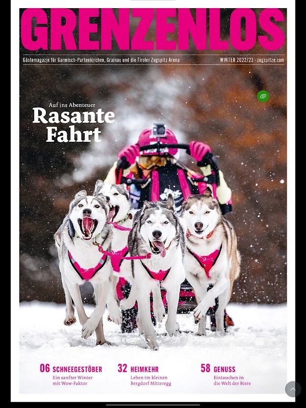 "گرینزلوس" ٹریلر زوگپٹز ایرینا ، گارمیش پارٹینکرچین اور گریناؤ کے تعطیلاتی مقامات کے لئے سرکاری تعطیل کا رسالہ ہے ، جو ایسوسی ایشن "زگسپٹز ارینا بائرن-تیرول" کے مشترکہ طور پر منظم کیا گیا ہے۔ یہ الپس میں چھتوں کے سب سے خوبصورت خطوں کو جوڑتا ہے اور جاننے کے قابل ، دلچسپ ، خوبصورت چیزوں کا تجربہ کرنے ، غیر معمولی اور پڑھنے کے قابل نیز چھٹی والے علاقوں میں اہم تاریخوں کے ساتھ معاہدہ کرتا ہے۔