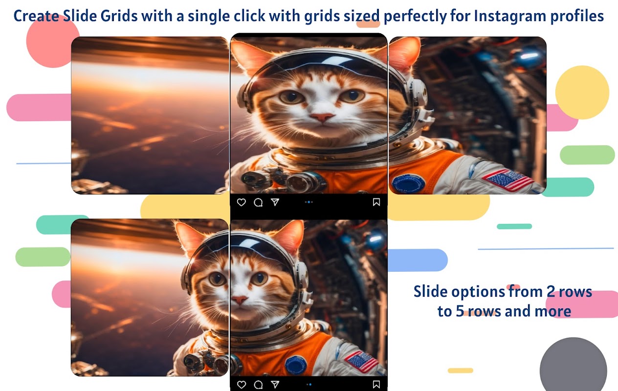 اپنی تصاویر کو متعدد ٹائلوں میں تقسیم کر کے آسانی کے ساتھ ہموار اور شاندار سلائیڈ گرڈز بنائیں۔ اپنے سامعین کو ایک دلکش کہانی سنانے کے تجربے سے متاثر کریں جو آپ کی پوسٹس کے ذریعے سوائپ کرتے ہی سامنے آتا ہے۔