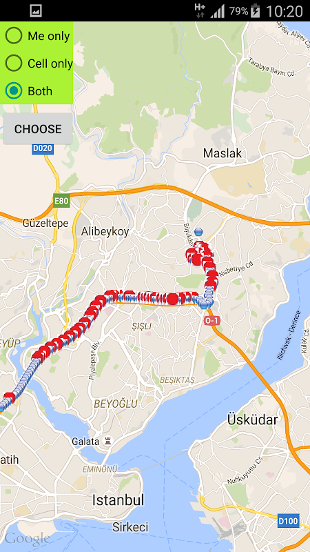 App tracks the GBS which you are connected. And reports GBS Operator Name, MCC(Mobile Country Code), MNC(Mobile Network Code),CID(Cell ID),LAC(Location Area Code), Cell Signal Strength and Cell location.