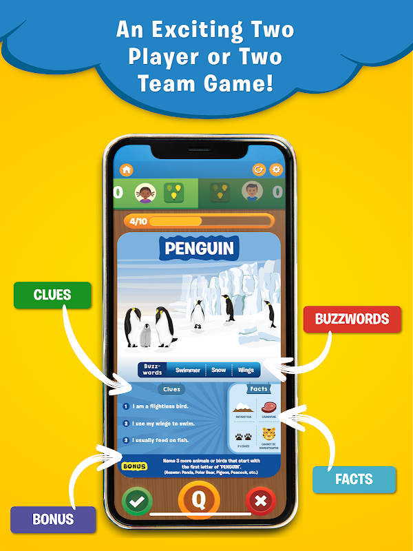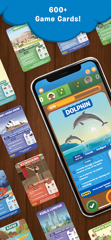 سینکڑوں تفریحی کارڈز - اندازہ لگائیں 10 میں 500 سے زیادہ منفرد کارڈز شامل ہیں جو کہ 10 گیم سیٹس میں پھیلے ہوئے ہیں جیسے کہ جانور، ڈایناسور، ممالک، لینڈ مارکس، کھیل اور بہت کچھ! ہر سیٹ آپ کو سوچنے اور جیتنے کے اپنے طریقے کا اندازہ لگانے پر مجبور کرے گا جب کہ آپ موضوعات کی ایک صف کے بارے میں سیکھیں گے جو آپ کو انسانی انسائیکلوپیڈیا میں بدل دے گا!