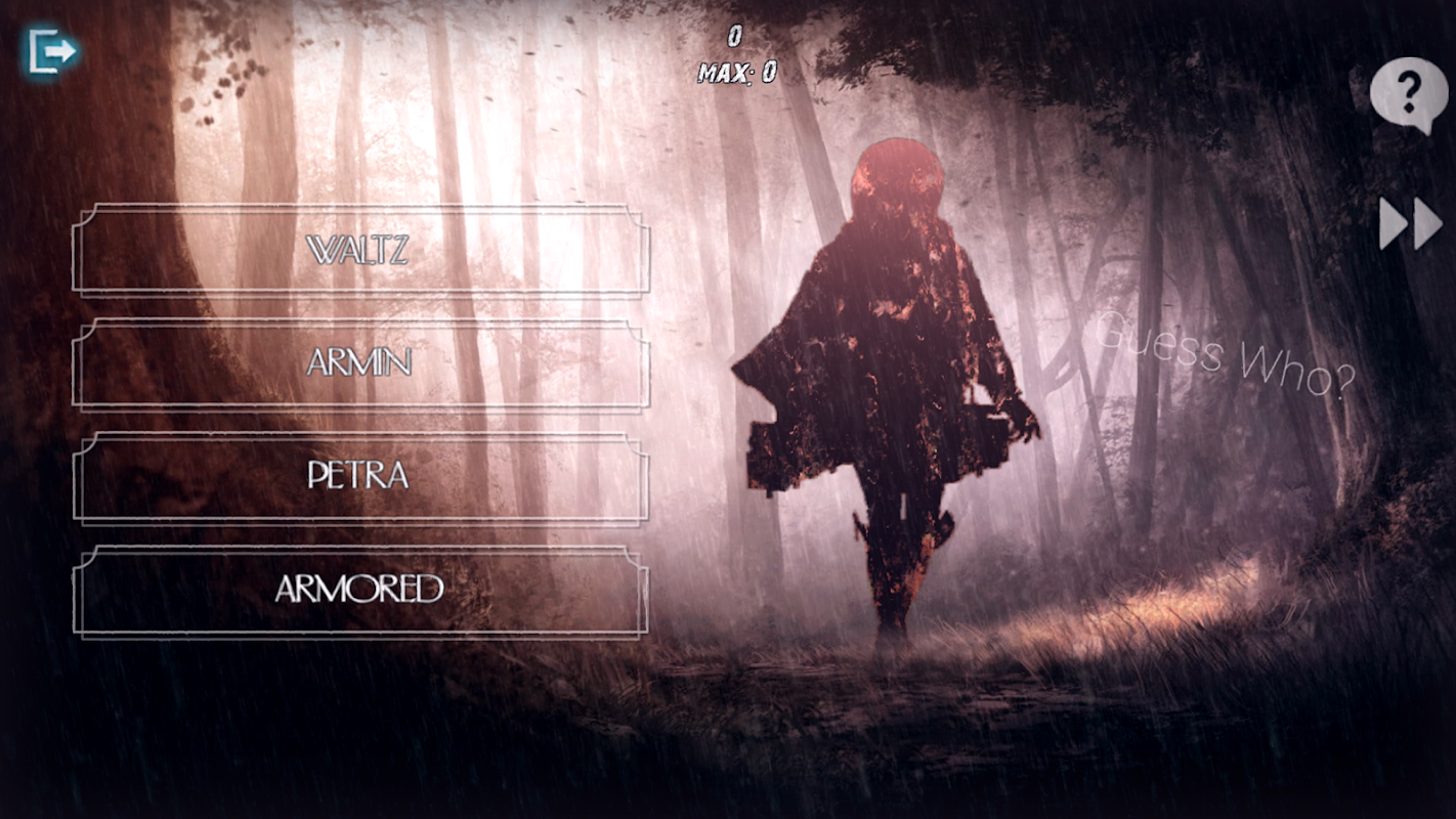 یہ ایپ شائقین نے دوسروں کو اٹیک آن ٹائٹن کے بارے میں اپنے علم کو بہتر بنانے میں مدد کرنے کے لیے بنائی تھی۔ تصاویر کو خیالی سیاہ سلہیٹ کے طور پر بنایا گیا ہے اور یہ anime کرداروں سے مطابقت نہیں رکھتی ہیں۔