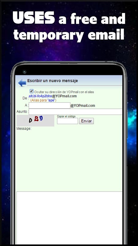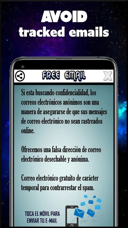 Sigue los pasos de la app para enviar todos los email anónimos que quieras.