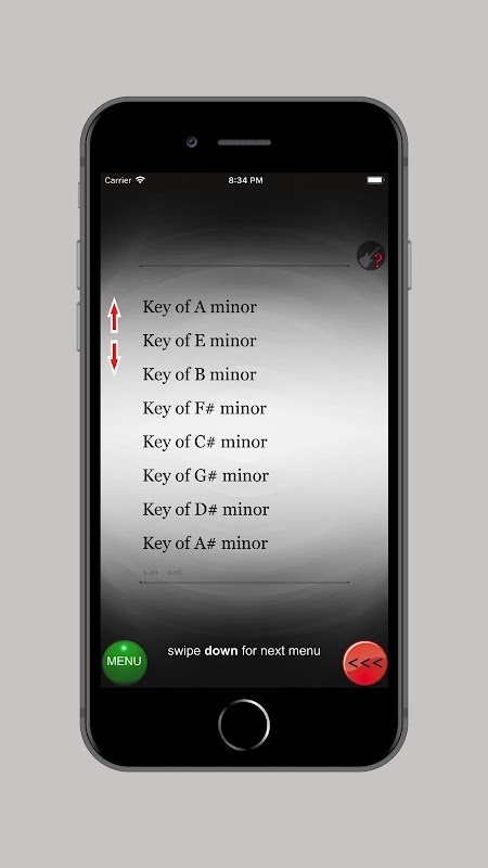 Play back and forth through the scale of any key using its main guitar chords including, major, minor keys, with natural and sevenths chord.