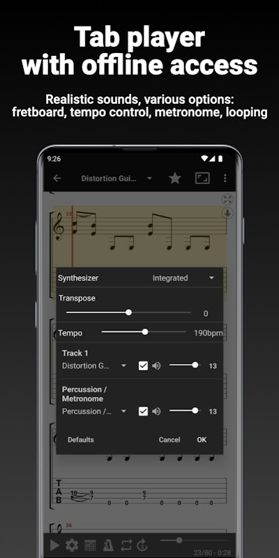 اس میں گٹار پرو ٹیبز اور گٹار، باس، یوکول اور ڈرم کے لیے راگ شامل ہیں جن تک آف لائن بھی رسائی حاصل کی جا سکتی ہے۔ بڑے انتخاب کے علاوہ، آپ کے پاس اپنی ٹیب فائلیں درآمد کرنے کا اختیار بھی ہے۔ اپنے پسندیدہ اور پلے لسٹس کو مختلف آلات پر ہم آہنگ کریں۔