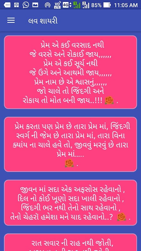 This Application has lots of gujarati shayari and hind shayari categories. Which are listed below.