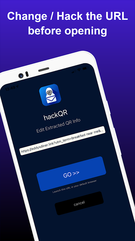 کسی بھی کیو آر کوڈ کو اسکین کرنے کے لئے ہیکر کا استعمال کریں اور یہ براؤزر کھولنے سے پہلے ایمبیڈڈ یو آر ایل کو ظاہر کرے گا۔ آپ میں صلاحیت ہے