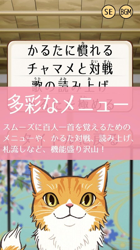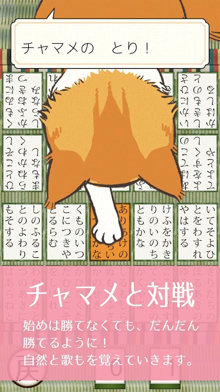 アプリの猫キャラを相手に、全首、札を取れたら、ミッション、クリアです。