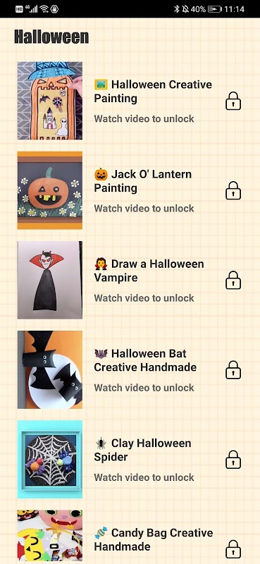 This application contains a collection of Halloween decorations schemes video tutorials. You can follow the video step by step to make the creative works. It has a friendly、simple & easy interface and it is suitable for people of all ages. You can use it offline, you can also save the video tutorial to your phone and share it with your friends.