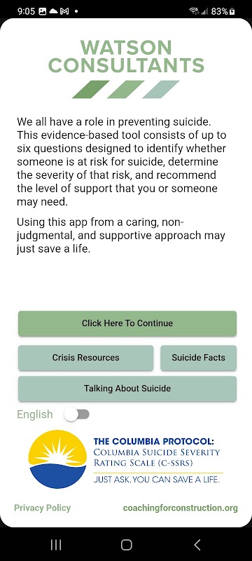 کولمبیا-خود کشی کی شدت کی درجہ بندی کا پیمانہ (C-SSRS)، جو اپنی نوعیت کا سب سے زیادہ ثبوت سے تعاون یافتہ ٹول ہے، سوالات کا ایک سادہ سلسلہ ہے جسے کوئی بھی شخص خودکشی کو روکنے میں مدد کے لیے دنیا میں کہیں بھی استعمال کر سکتا ہے۔