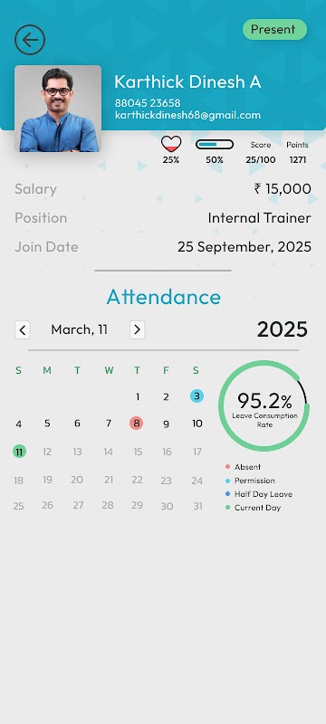 • روزانہ کی حیثیت کے ساتھ عملے کی حاضری کے لاگ