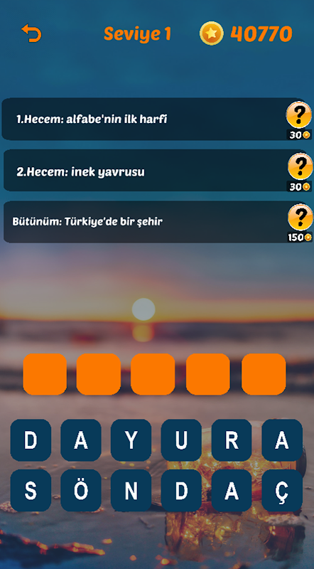 Hece Bilmece oyununun her seviyesinde birden fazla soru var ve her bir soru hece şeklinde soruluyor.