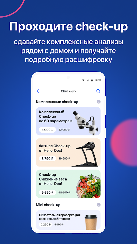 ہیلو، ڈاکٹر سے دستخطی چیک اپ کے ذریعے جائیں! 50% تک کی رعایت کے ساتھ۔ دائمی بیماریوں کو کنٹرول کریں، وٹامنز اور منرلز کی مناسب سطح کو برقرار رکھیں، محفوظ طریقے سے وزن کم کریں اور اپنی فٹنس ٹریننگ کی تاثیر میں اضافہ کریں، بچوں کی صحت کے اہم اشاریوں کا جائزہ لیں۔ ٹیسٹ گھر کے قریب لیے جا سکتے ہیں، اور نتائج کی تفصیلی بریک ڈاؤن ایپ میں دستیاب ہوگی۔