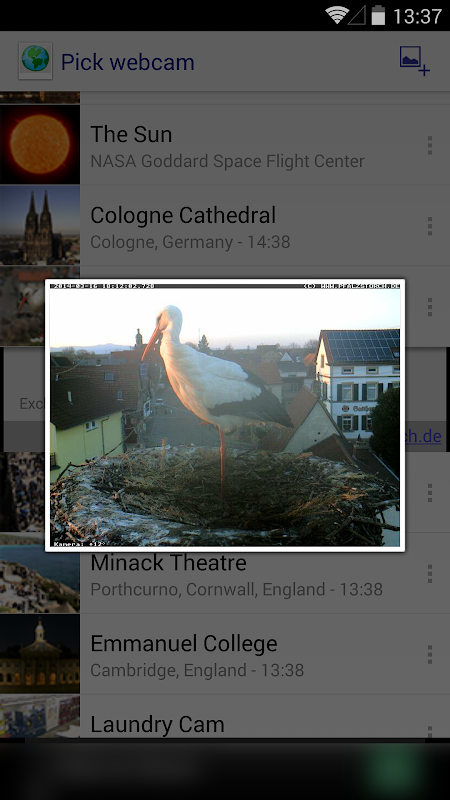 You can choose a specific cam or select random mode to be surprised at every refresh.