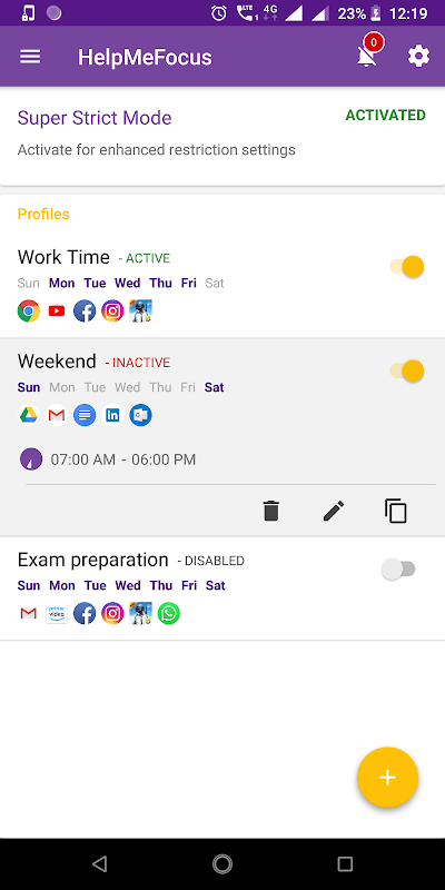 selected منتخب ایام اور ٹائم فریم پر ایپ بلاک اور بلاک اطلاعات کو اہل بنانے کے لئے ایک شیڈول پروفائل بنائیں۔