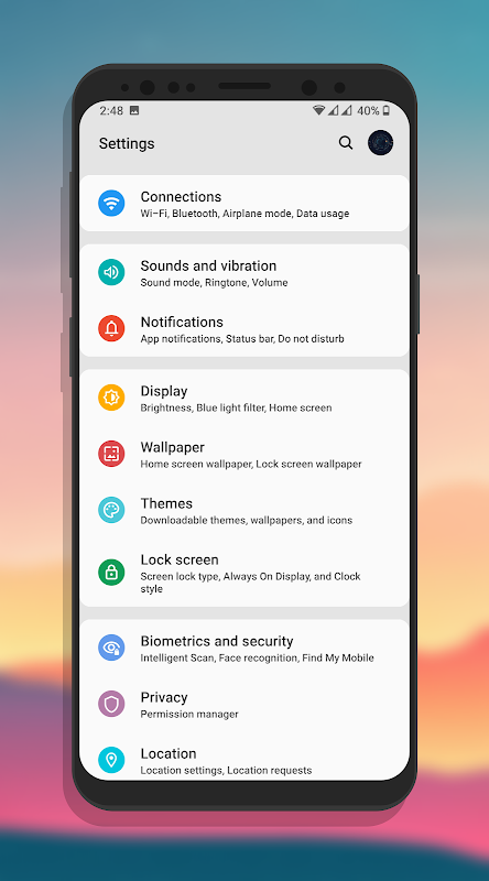 ڈے / نائٹ دونوں طریقوں کے لئے AOSP 11 عناصر کے ساتھ تھیم سیمسنگ OneUI جلد۔