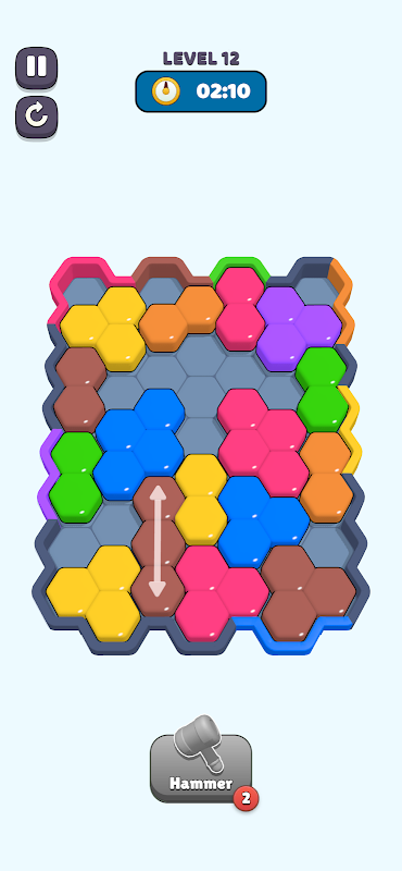 رنگین ہیکسا بلاکس کو منتقل کریں اور ہر ایک کو اس کے مماثل رنگ کے دروازے کی رہنمائی کریں! دوسرے بلاکس کو دوبارہ ترتیب دیں، راستے کھولیں، اور ہر بلاک کو درست ایگزٹ کے ذریعے بھیج کر بورڈ کو صاف کریں۔ پہیلی کو حل کریں اور سطح جیتیں!