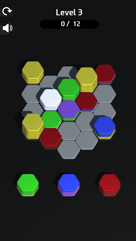 Drag and drop your hexagons next to other hexagons of the same color to sort
