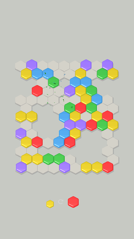 میچ 3 یا اس سے زیادہ: مسدس کو تبدیل کرنے کے لیے تھپتھپائیں اور گھسیٹیں اور بورڈ سے صاف کرنے کے لیے ایک ہی رنگ کے کم از کم تین سے میچ کریں۔