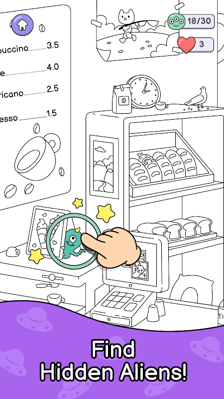 غیر ملکی شہر کی روزمرہ اشیاء کے بھیس میں، سادہ نظروں میں چھپے ہوئے ہیں۔ پوشیدہ ایلینز ایک آرام دہ پوشیدہ آبجیکٹ گیم ہے جہاں آپ مصروف مناظر کو اسکین کرتے ہیں، زوم ان کرتے ہیں اور پوشیدہ اشیاء کو اس سے پہلے کہ وہ آپ کے پاس سے پھسل جاتے ہیں۔