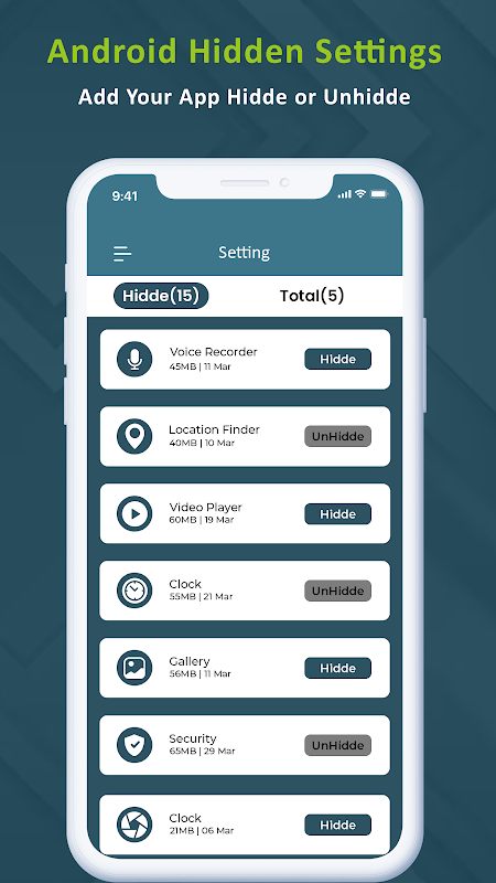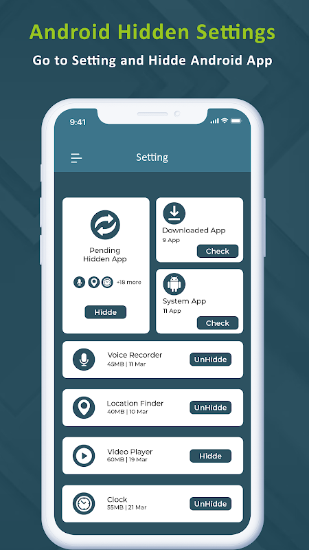 android ایپ کے لیے پوشیدہ سیٹنگ آپ کے اینڈرائیڈ ڈیوائس میں بغیر روٹ اور بغیر کسی اجازت کے پوشیدہ سیٹنگز تک رسائی کی اجازت دیتی ہے۔ یہ ڈیوائس کی معلومات دے گا۔ ایپ کے اعدادوشمار آپ ایپ کی تفصیلات تک رسائی حاصل کرسکتے ہیں جیسے اوقات وغیرہ۔ وائی فائی کی معلومات اور آپ وائی فائی کی معلومات تک رسائی حاصل کرسکتے ہیں۔ اور نوٹیفکیشن کی سرگزشت اور آپ بہت سی مزید پوشیدہ ترتیبات کے ساتھ نوٹیفکیشن ہسٹری کی معلومات تک رسائی حاصل کر سکتے ہیں۔ اینڈرائیڈ ایپ کے لیے پوشیدہ سیٹنگز میں انسٹال کردہ تمام ایپس کی فہرست دکھانے کی خصوصیت ہے۔ پوشیدہ ترتیبات ایک ٹولز ایپ ہے۔ اس ایپ کے ذریعے آپ اپنے فون کی کسی بھی سیٹنگ تک آسانی سے رسائی حاصل کر سکتے ہیں۔