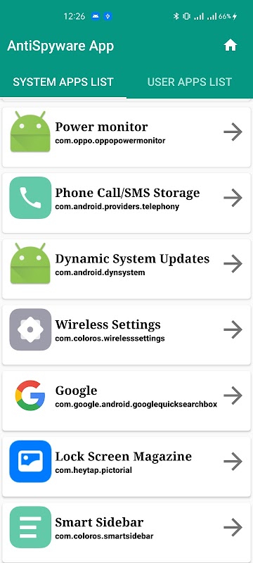 پوشیدہ ایپس اسکینر ایپ اپنے موبائل فون کے اندر موجود تمام ایپلیکیشن کو اسکین کریں اور اسے دو حصوں میں تقسیم کریں ایک سسٹم ایپس کی معلومات ہے اور دوسرا صارف انسٹال ایپ کی معلومات ہے۔ سسٹم ایپس میں ان کے ہم سسٹم اینڈروئیڈ کے ذریعہ ایپ انسٹال دکھاتے ہیں جو صارف کے لئے پوشیدہ ہے اور صارف کو نہیں دکھاتی ہے کیونکہ صارف اس ایپس کے ساتھ کوئی کام نہیں کرسکتا ہے۔