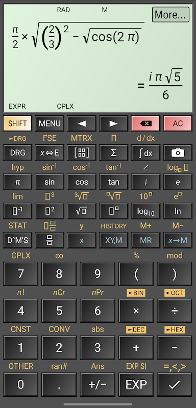 علامتی الجبرا، گرافنگ، مساوات، انضمام اور مشتقات کے ساتھ بہترین سائنسی کیلکولیٹر۔