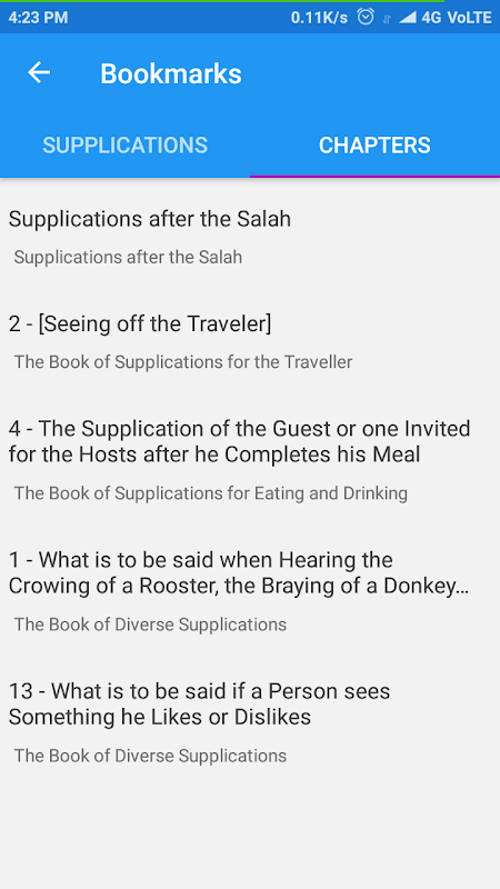 4) Option to add to Bookmarks (Individual dua and chapter)