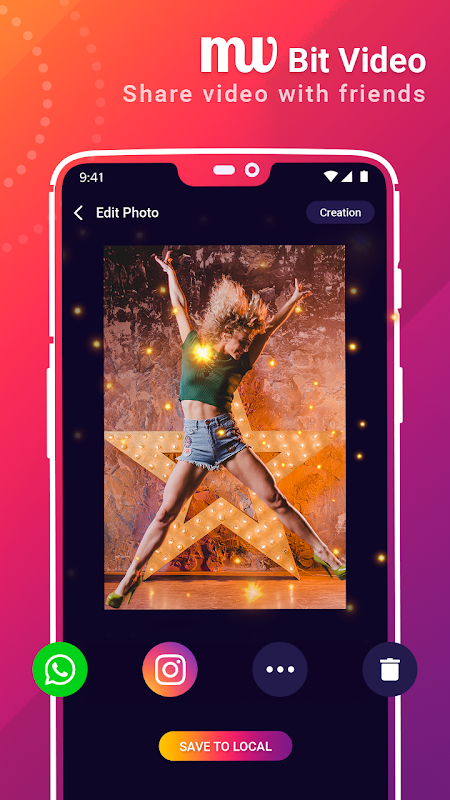 This app contains large number of Particle.ly video status. You can download any Particle.ly video status you like or you can create your video with your own images. W