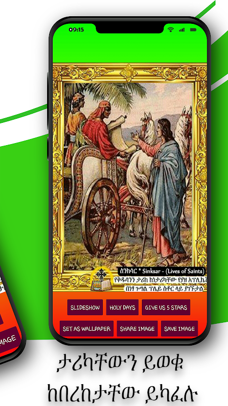 اس اے پی پی میں ایتھوپیا کے آرتھوڈوکس تیواہیدو چرچ کے مقدس سنتوں ، مقدس فرشتوں ، مقدس باپوں ، مقدس ماؤں اور خدا کی مقدس تصاویر کی 400 سے زیادہ مختلف تصاویر شامل ہیں جو سالانہ ، ماہانہ مقدس دن کی ایک فہرست کے ساتھ ہیں جو آرتھوڈوکس تیواہیدو چرچ میں منائے جاتے ہیں اور آخر کار ایپ میں بائبل کے نام اور ان کی فہرست کی فہرست شامل ہے۔