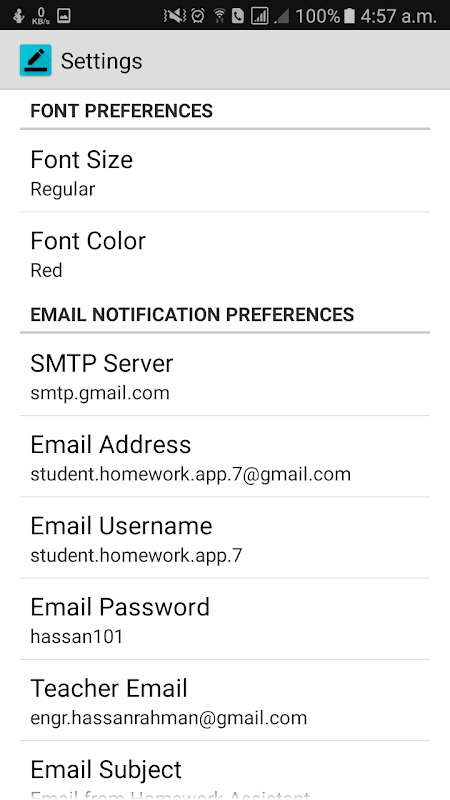 Save final processed image to device or send directly to teacher through email functionality is also added. User can change font color and size as well as email of teacher.