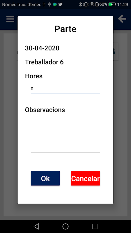 Con esta app se puede informar remotamente del numero de horas que realiza cada empleado por día del mes