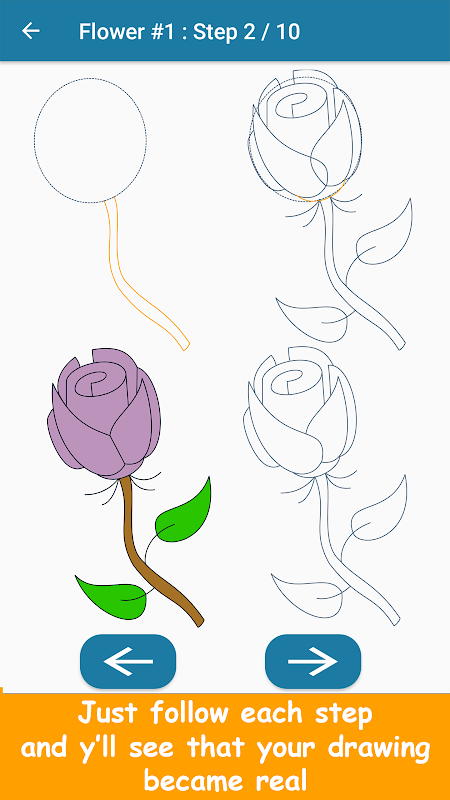 This app is specialized in how to draw a rose and also how to draw a flower like how to draw a pretty flower and how to draw a rose for kids so if you want to learn drawings of roses and if even you like to know simply how to draw something easy you can follow this step by step drawing guide, it's all cool and easy drawings of roses and flowers. you can select between three level of drawings difficulty.